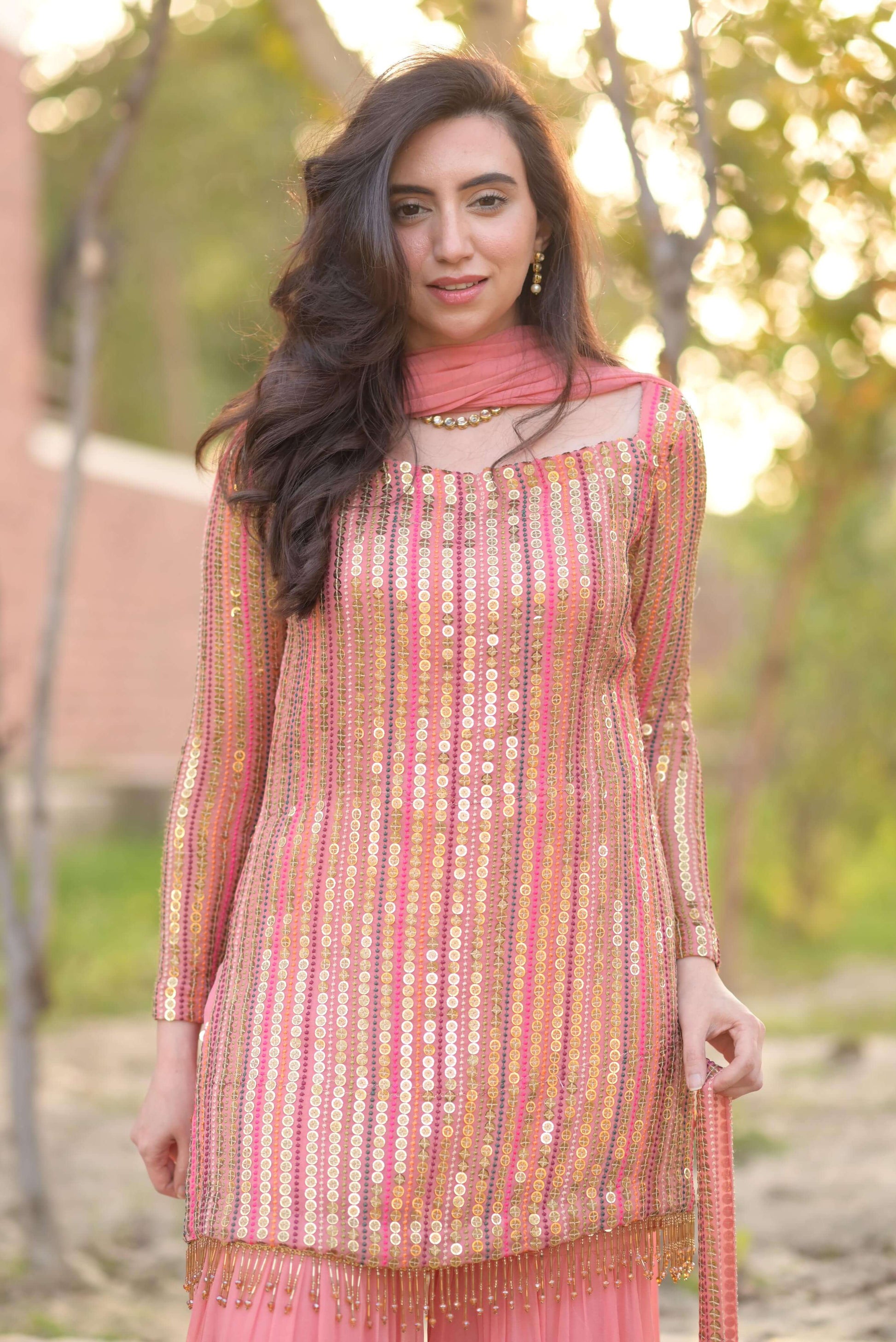 Malikajaan Peach Gharara Set 3pcs