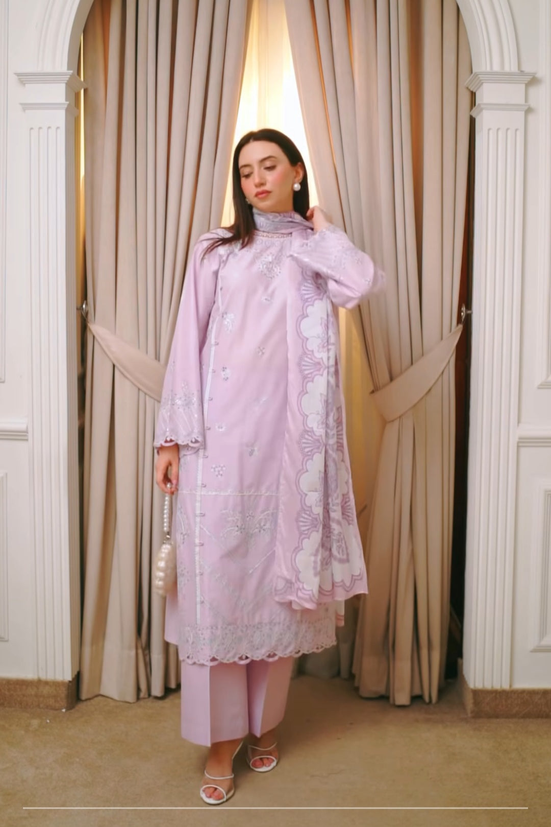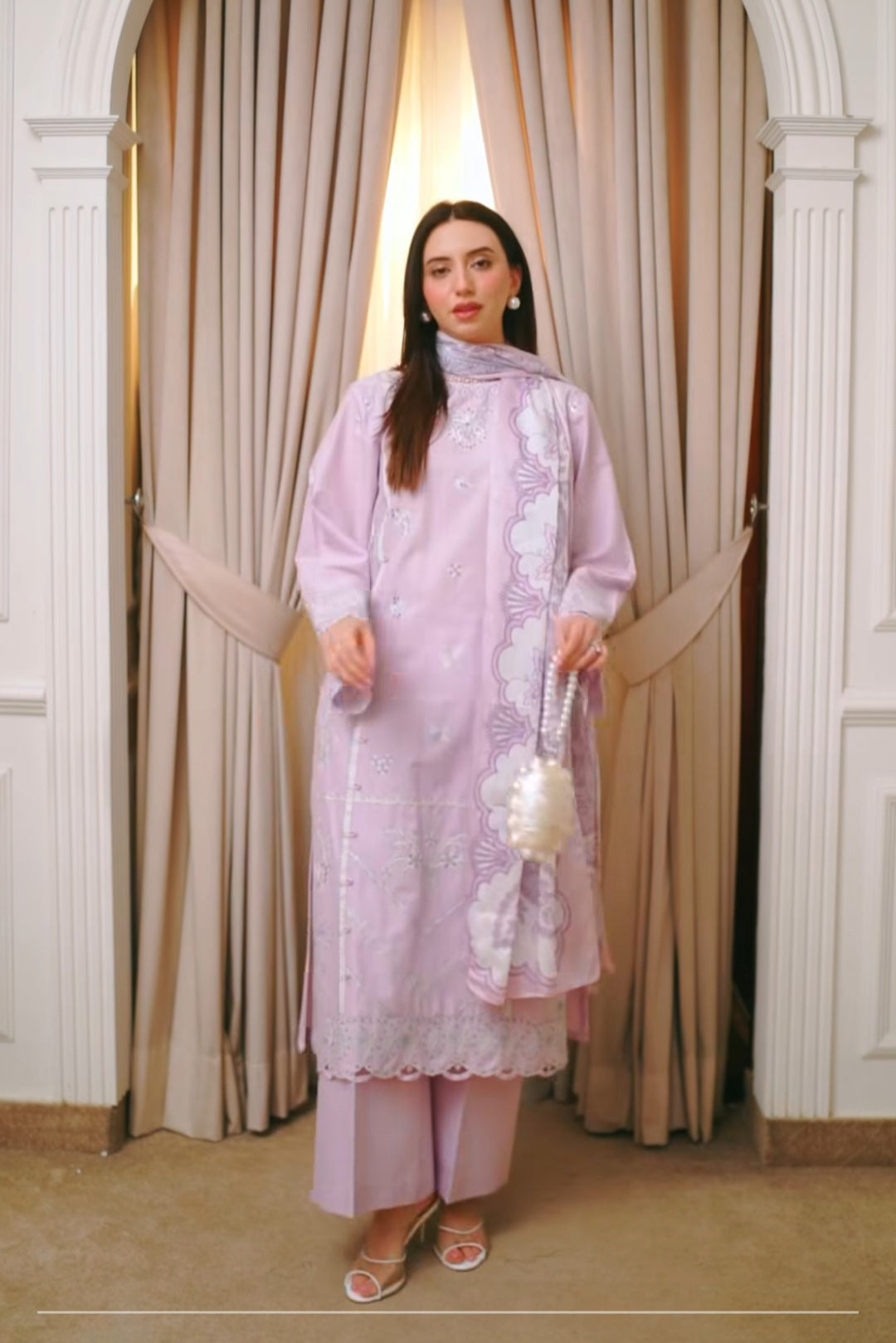 Worn once. Stitched same as sample as model is wearing. Dress came with stains from brand and dupatta was also torn from the ccorner. It came like thus from the brand.